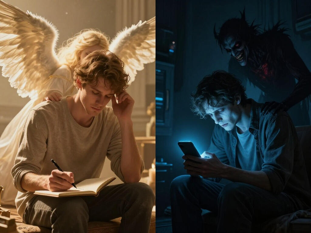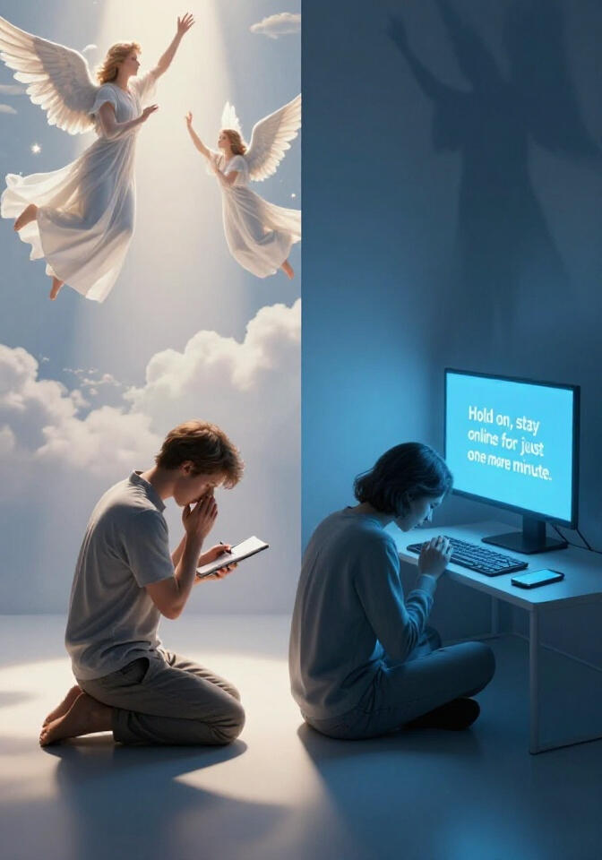 Čovjek sjedi za tehnologijom i što ju više koristi sve je više umoran. U jednom trenu čovjeku dolazi u misli vrijeme kada su ljudi pisali olovkom na papir i bili sretni i više odmorni nego umorni. Tada se čovjeku pred oči ukaza knjiga iz koje izlazi svjetlost i čovjeka mudrost prosvijetli da shvati da je snaga u izvoru života.